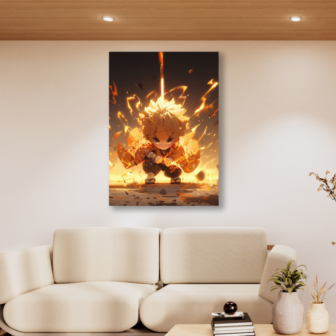 The A3 size metal poster is a visual feast, featuring Zenitsu Agatsuma in all his animated glory. The glossy surface serves as a canvas that enhances the intensity and vibrancy of the artwork, creating a riveting spectacle on your wall. Immerse yourself in the anime narrative, as Zenitsu's character unfolds dynamically, encapsulating the essence of Demon Slayer.